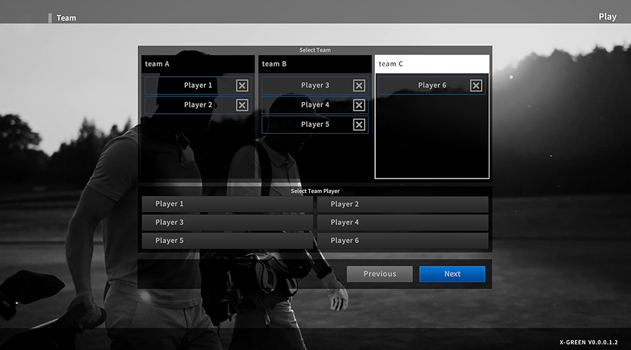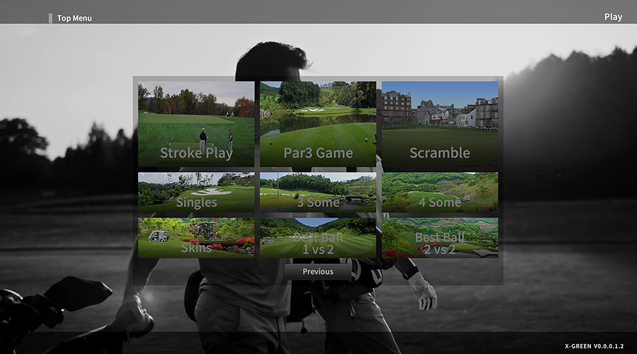 X-GOLF provides different game modes - Stroke, Scramble, Skins, Par3, Single, 3 Some, 4 Some, Best Ball 1 vs 2, and Best Ball 2 vs 2 and