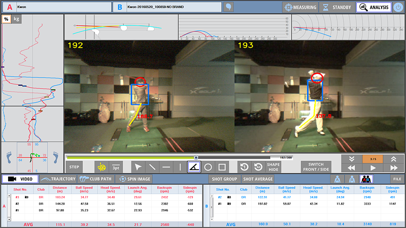 최근 골프 레슨의 세계적인 트렌드가 체중 이동을 분석하는 것입니다. 정확한 분석을 위하여 한 번의 스윙에서 모든 데이터를 동시에 취득해야 합니다. 골프는 정교하며 예민한 운동입니다. 또한, 매우 과학적인 운동이기도 합니다. 최근 들어 골프 연습 시에 자신의 스윙 영상을 저장하여 분석자료로 활용하는 현상이 많아졌고 그 효과 또한 매우 큽니다. 그러나 저 프레임 수/ 1채널 영상으로는 분석 효과가 작을 뿐만 아니라 잘못된 결과를 초래할 수도 있습니다.