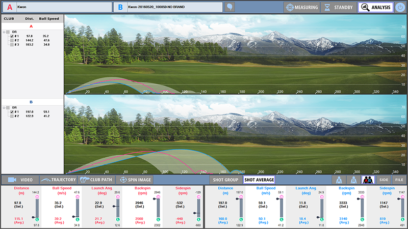 3차원 영상을 제대로 분석하려면 최소 2채널(기본 60FPS/옵션 120FPS, 300FPS)의 카메라가 필요합니다. 2채널(기본 60FPS/옵션 120FPS, 300FPS) 카메라, 전후, 좌/우의 체중 중심이동 측정 장비, 클럽 및 볼의 계측 장비, 그리고 웹 기반 전용분석 프로그램을 합치면 최고의 분석 시스템이 될 것입니다.